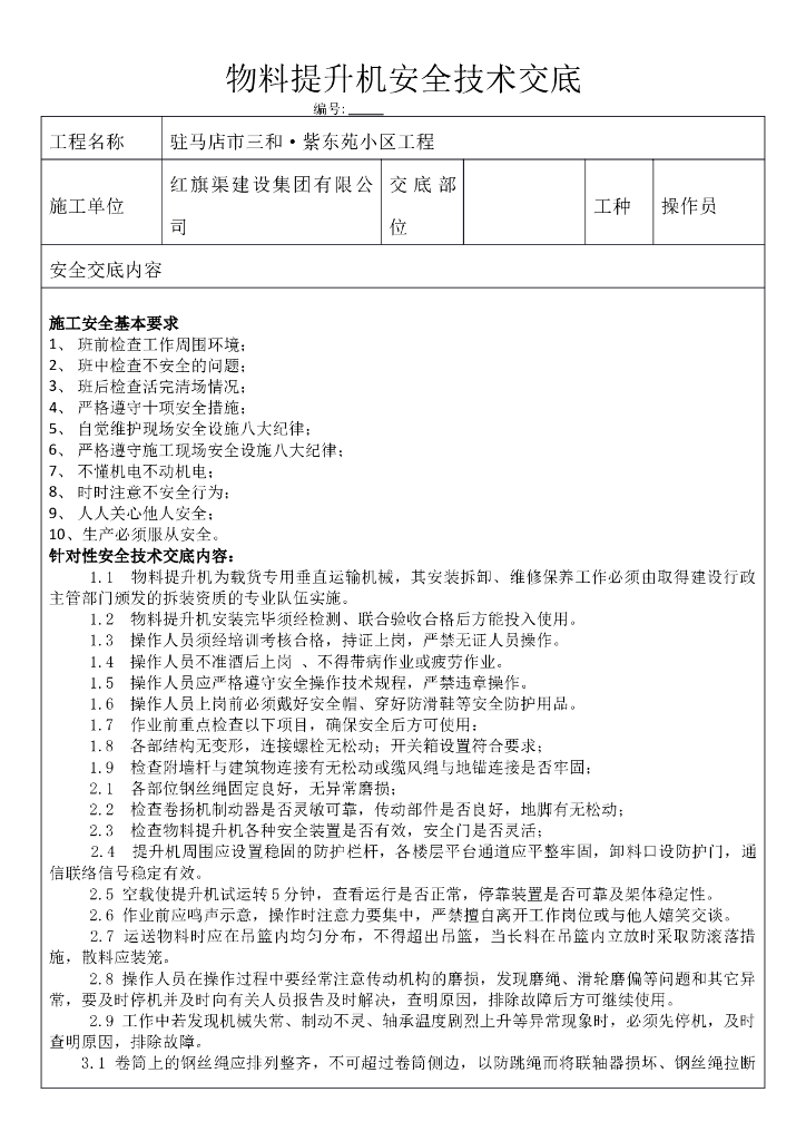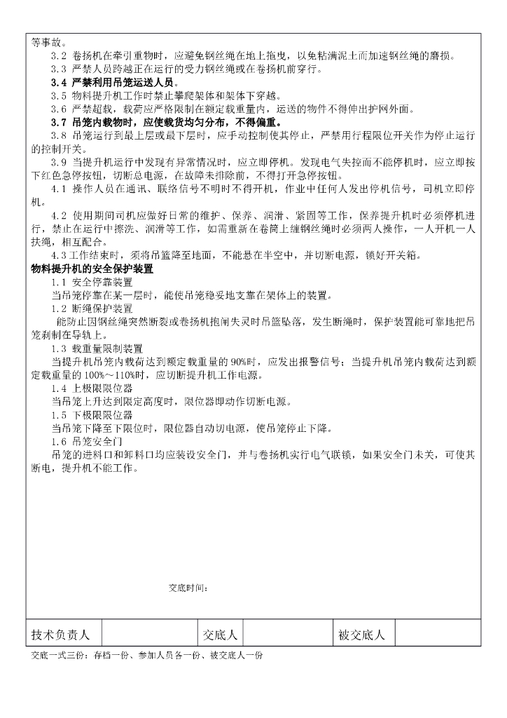 物料提升机安全技术交底.doc