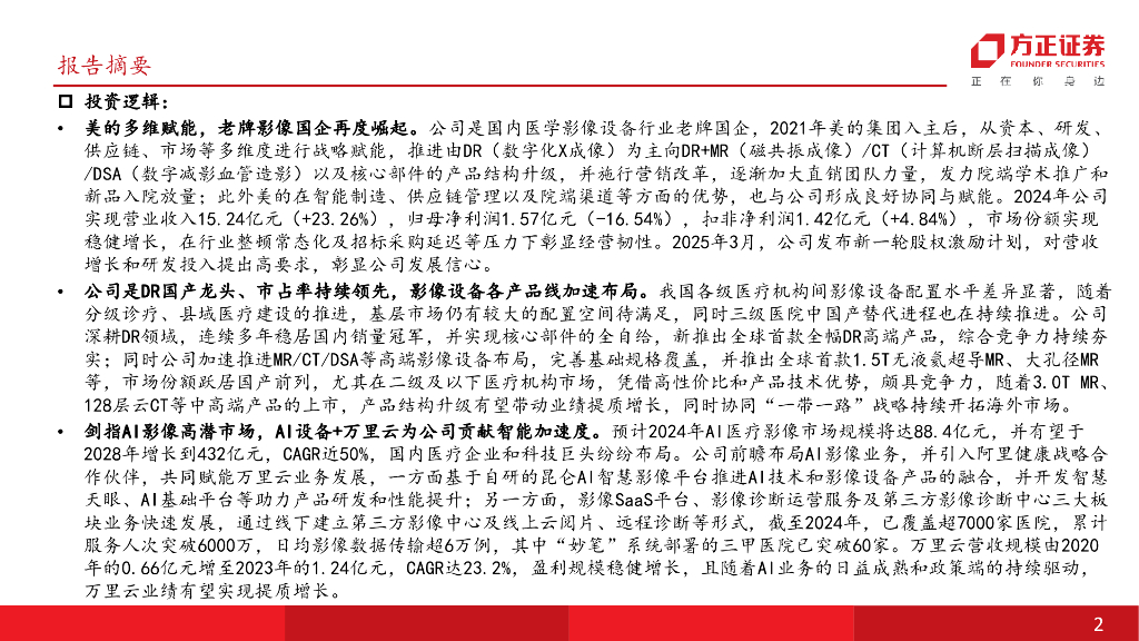 方正证券:万东医疗(600055)——公司深度报告-美的赋能老牌影像设备国企再崛起,AI赋能智慧诊断加速度.pdf