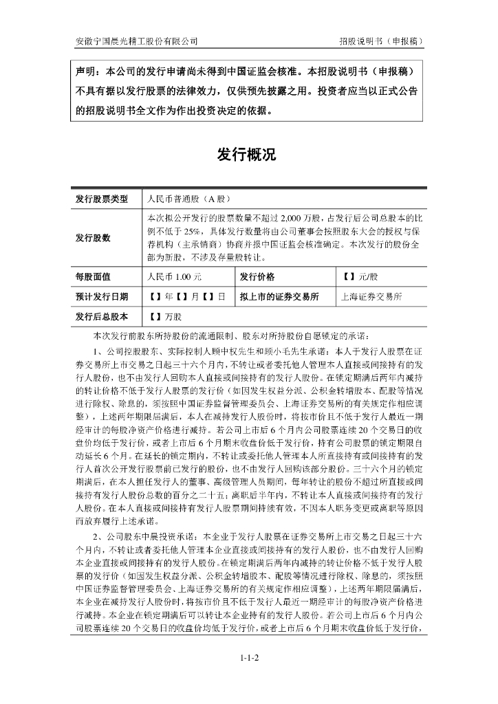 安徽宁国晨光精工股份有限公司上交所主板IPO上市招股说明书.pdf