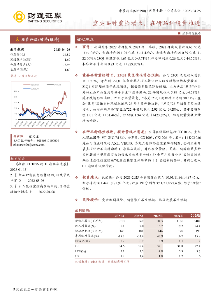 财通证券:康辰药业(603590)-重要品种重拾增长,在研品种稳步推进.pdf
