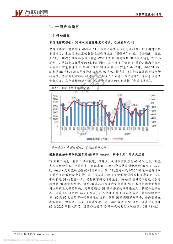 万联证券:通信行业周观点:5G手机销量爆发式增长,三大运营集采公示启动.pdf