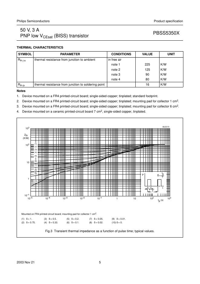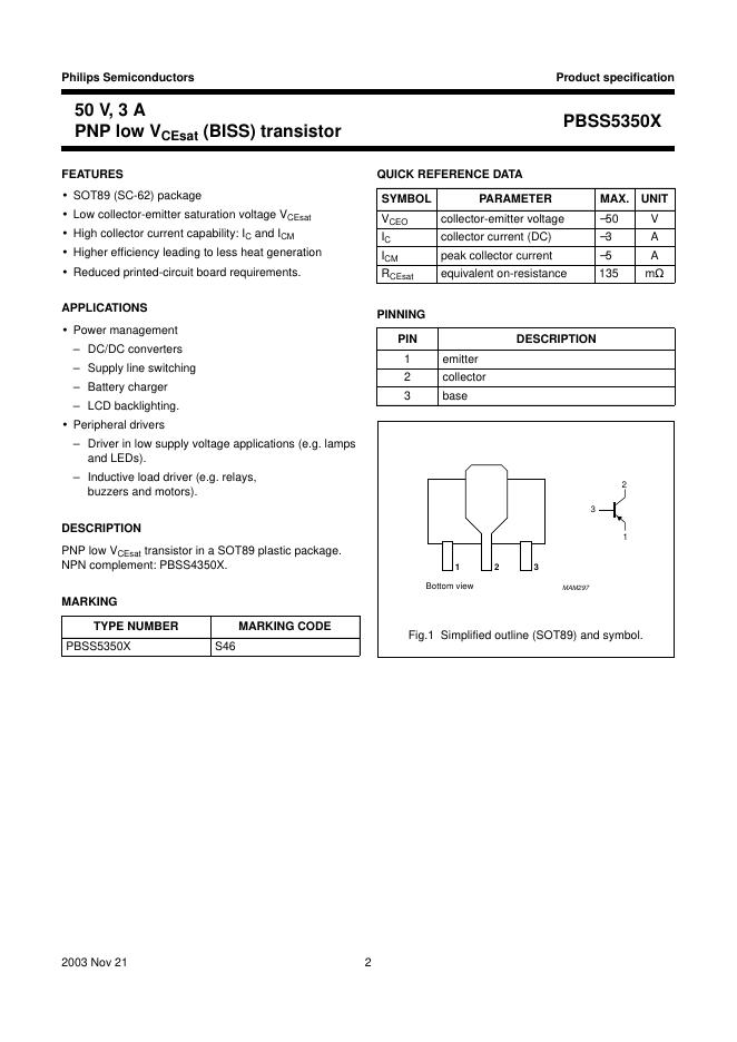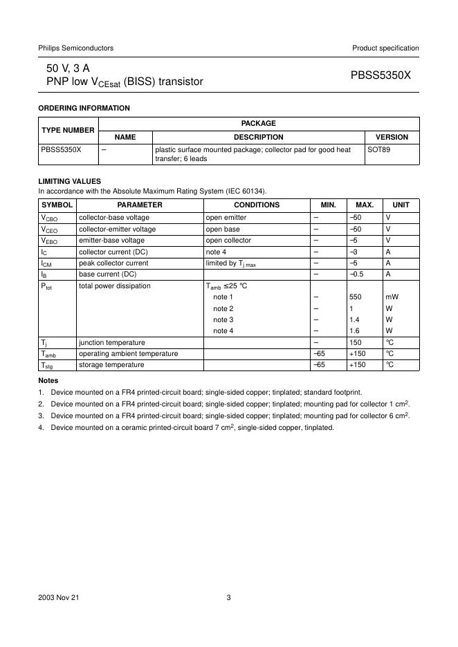 philips PBSS5350X 50 V, 3 A PNP low VCEsat (BISS) transistor 数据手册.pdf