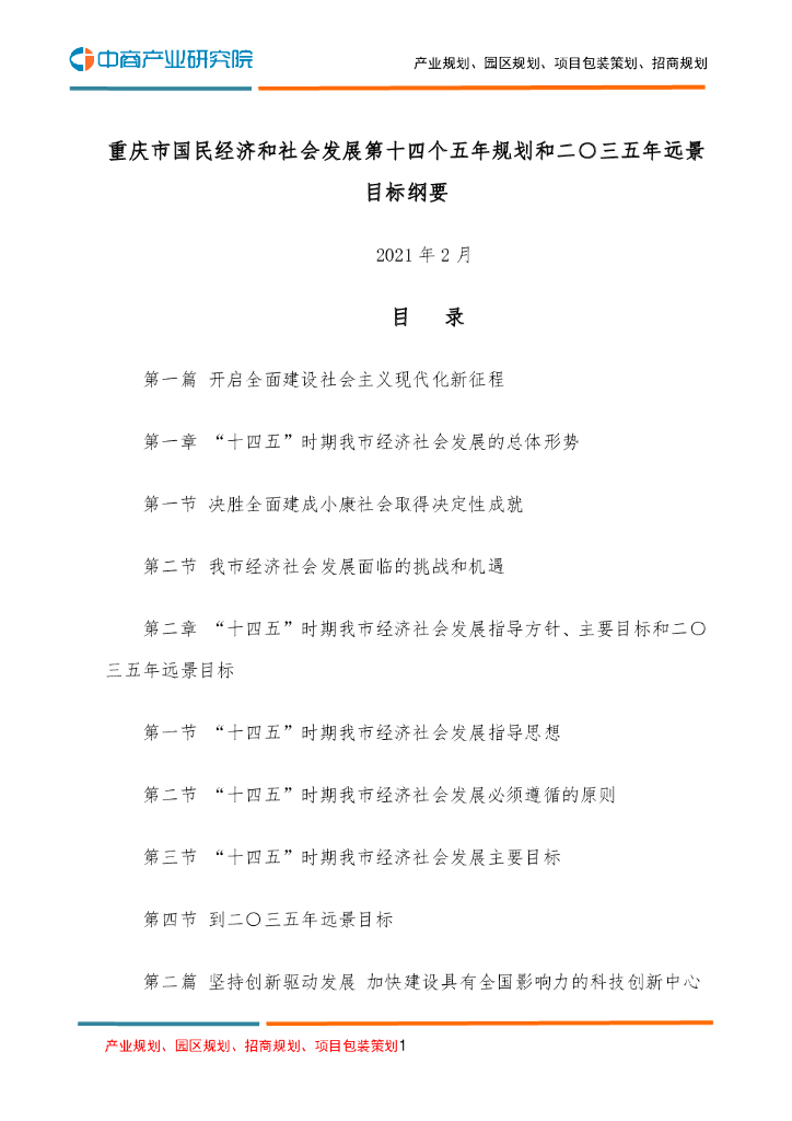 重庆市国民经济和社会发展第十四个五年规划和二〇三五年远景目标纲要.pdf
