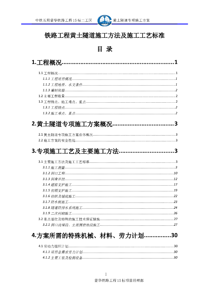 铁路工程黄土隧道施工方法及施工工艺标准.doc