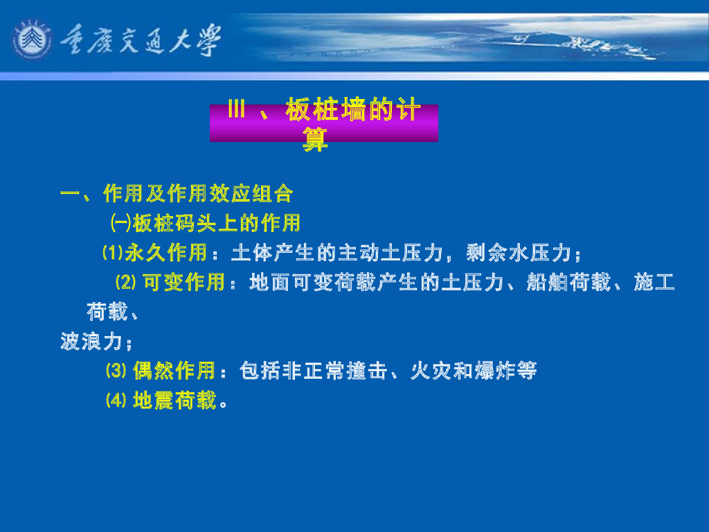《港口水工建筑物》教学课件-板桩码头计算(1):作用、设计状况与作用效应组合.pdf