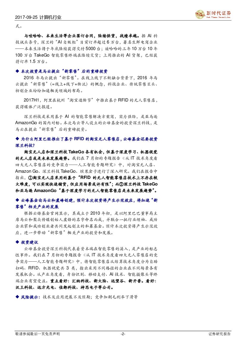 新时代证券:人工智能系列报告:马云提出“新零售”近一年,云峰基金数千万投资深兰科技.pdf