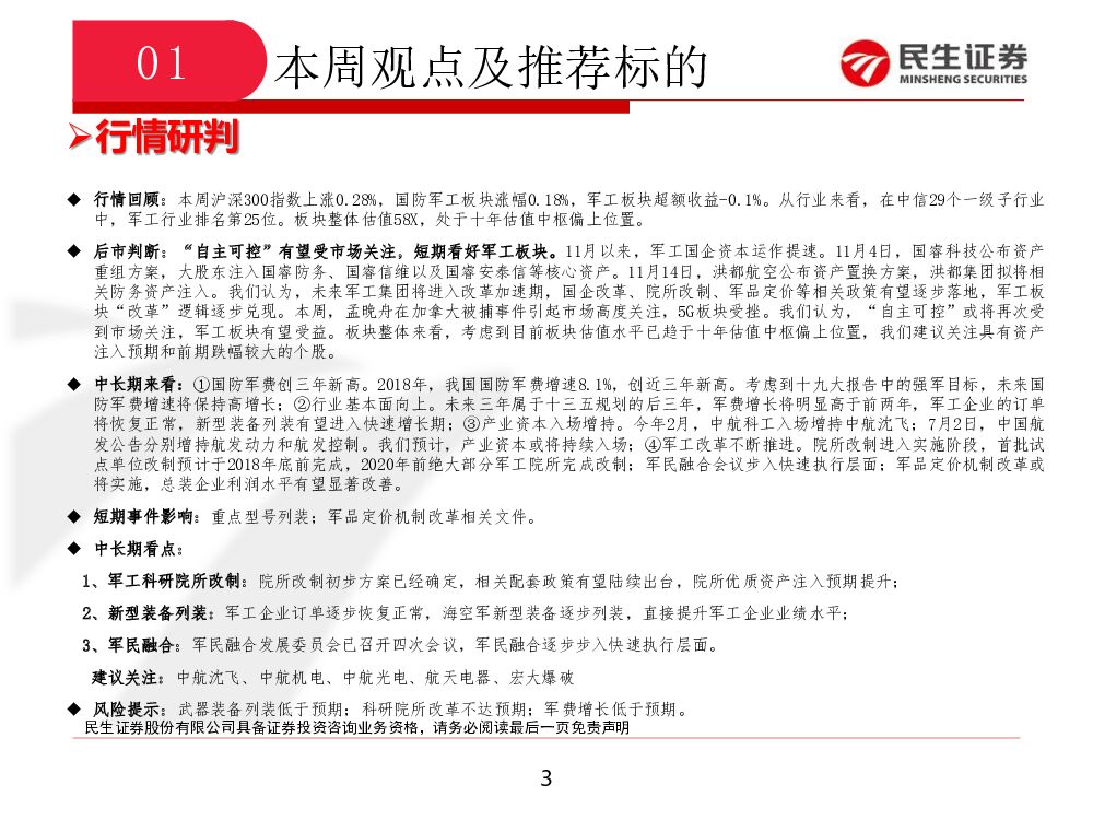 民生证券:国防军工行业周报:“自主可控”有望受市场关注,短期看好军工板块.pdf