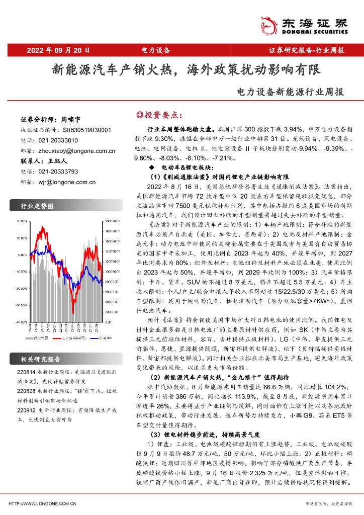 东海证券:电力设备新能源行业周报:新能源汽车产销火热,海外政策扰动影响有限.pdf