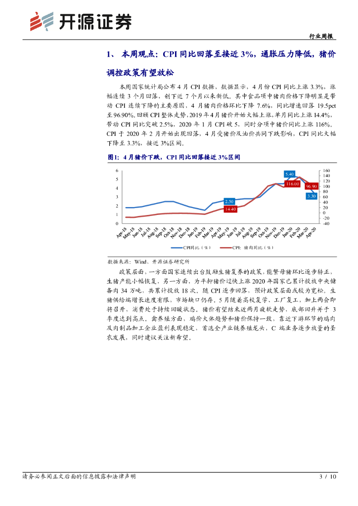 开源证券:农林牧渔行业周报:CPI同比回落至接近3%,通胀压力降低,猪价调控政策有望放松.pdf
