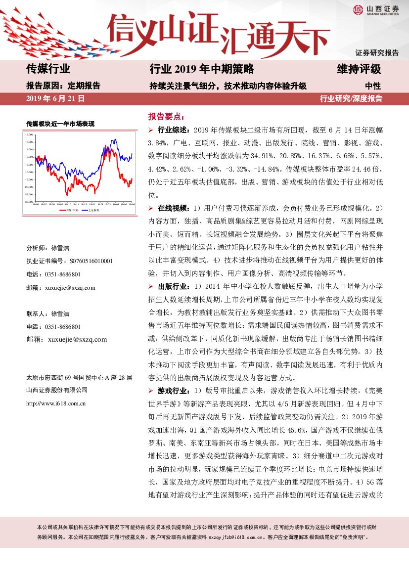 山西证券:传媒行业2019年中期策略:持续关注景气细分,技术推动内容体验升级.pdf