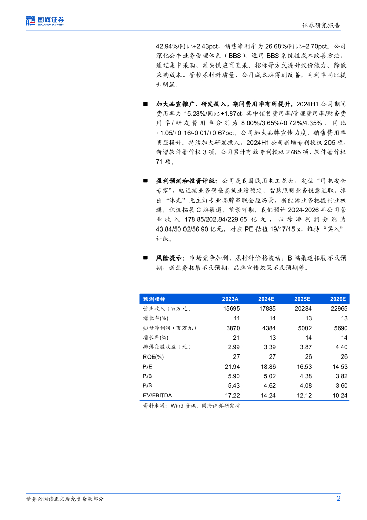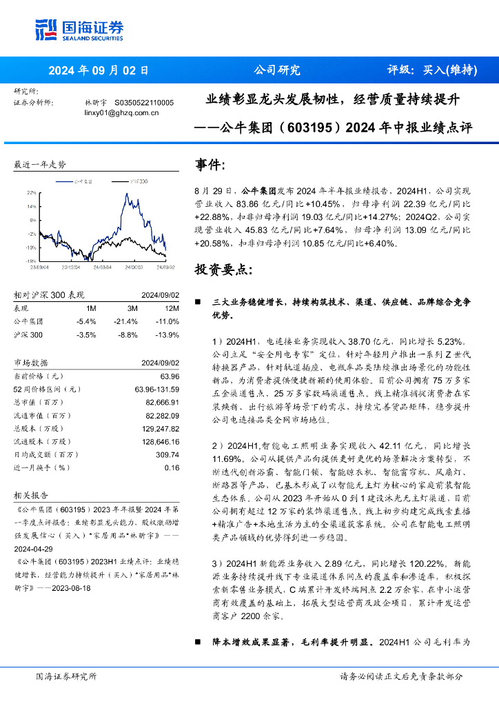 国海证券:公牛集团(603195)-2024年中报业绩点评:业绩彰显龙头发展韧性,经营质量持续提升.pdf