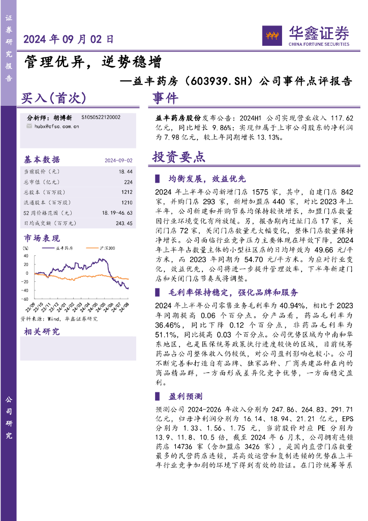 华鑫证券:益丰药房(603939)-公司事件点评报告:管理优异,逆势稳增.pdf