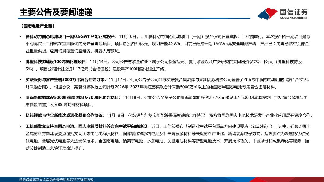 国信证券:锂电产业链行业双周评(11月第2期):锂电行业持续反内卷,固态电池产业化稳步推进.pdf