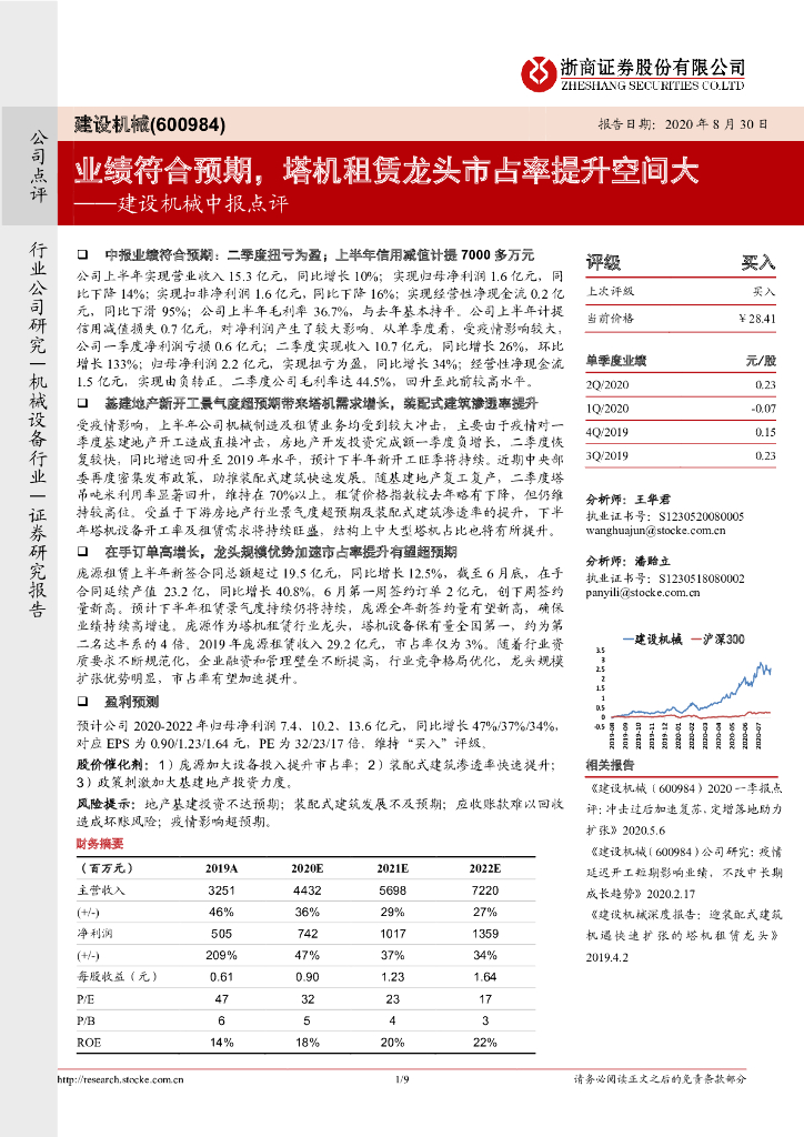 浙商证券:建设机械中报点评:业绩符合预期,塔机租赁龙头市占率提升空间大.pdf