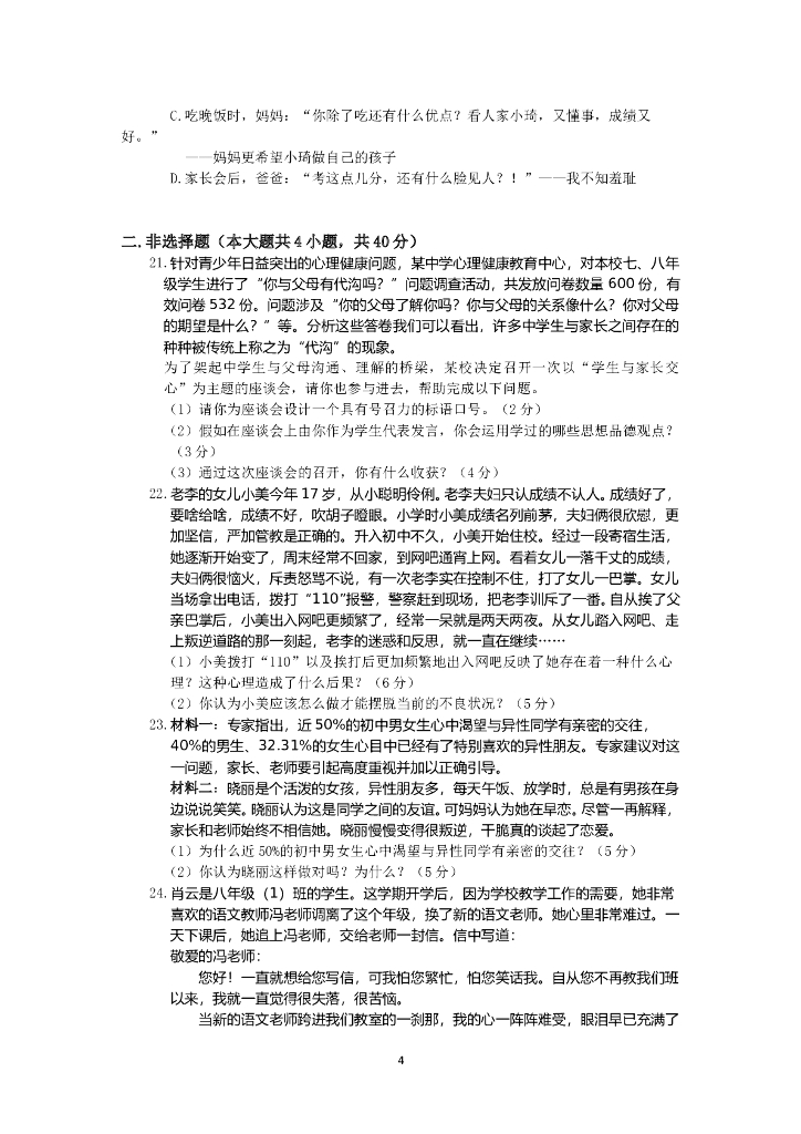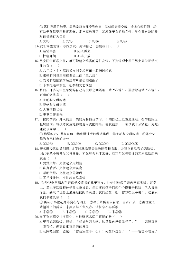 人教实验版八年级政治上册期中复习检测题(2)(含答案详解).doc