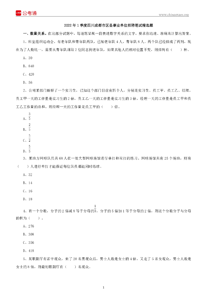 2022年1季度四川成都市区县事业单位招聘笔试精选题.pdf