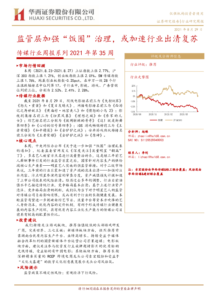 华西证券:传媒行业周报系列2021年第35周:监管层加强“饭圈”治理,或加速行业出清复苏.pdf