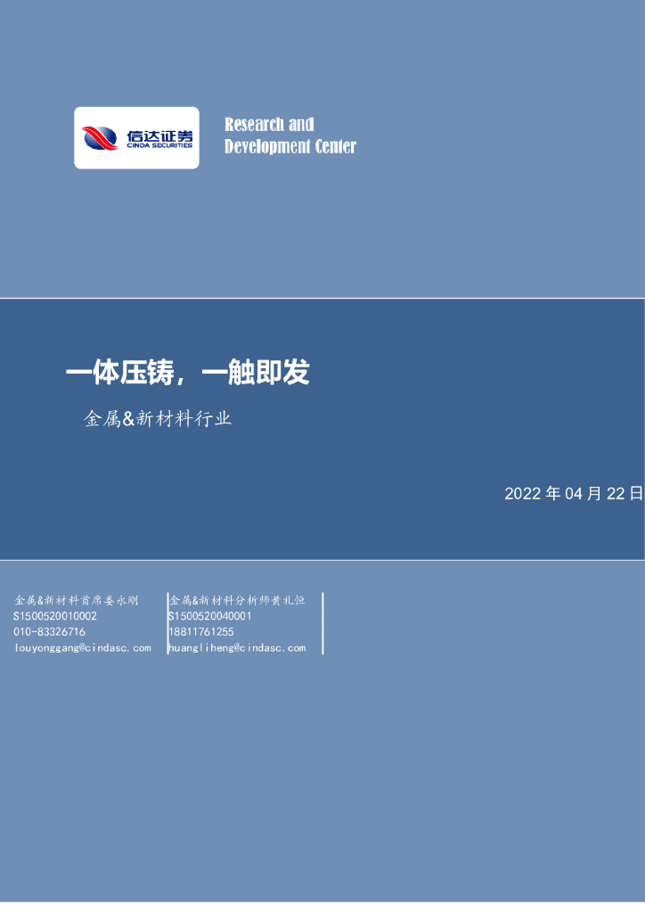 信达证券:金属&新材料行业:一体压铸,一触即发.pdf