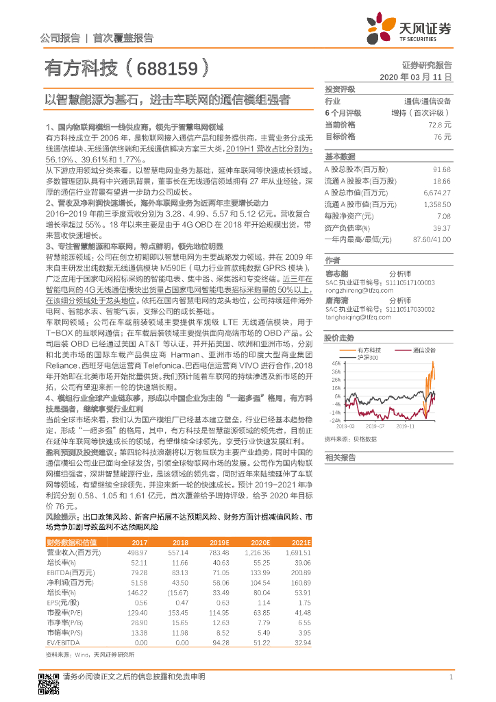天风证券:有方科技(688159)-以智慧能源为基石,进击车联网的通信模组强者.pdf