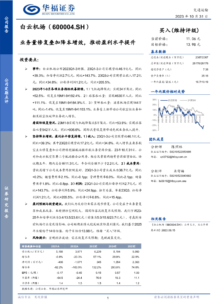 华福证券:白云机场(600004)-业务量修复叠加降本增效,推动盈利水平提升.pdf