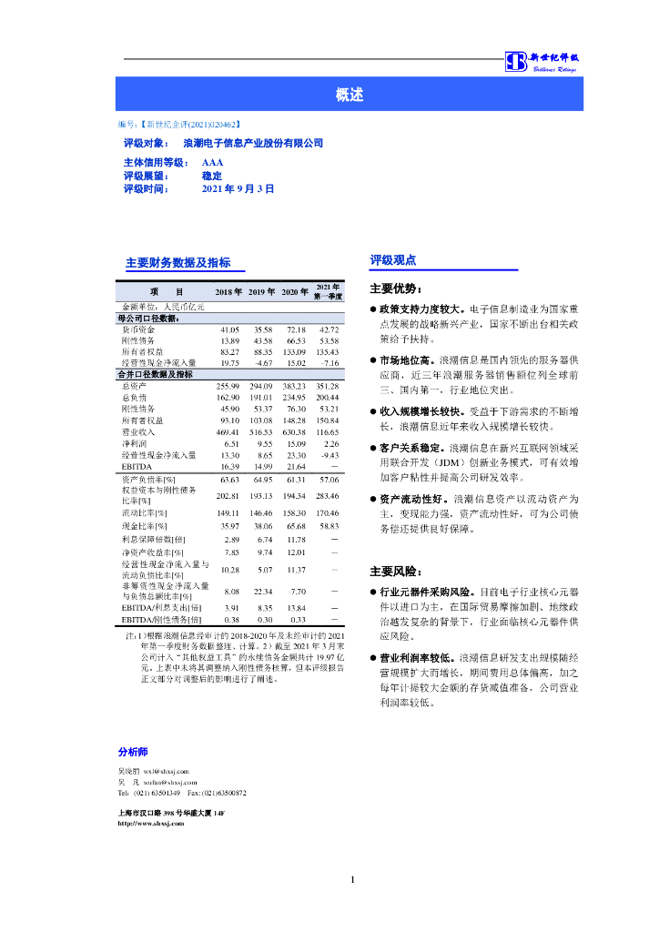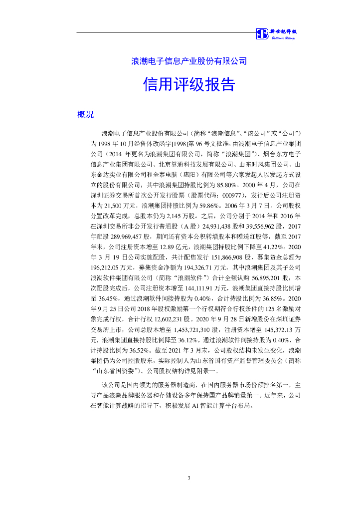 新世纪:浪潮电子信息产业股份有限公司主体信用评级报告及跟踪评级安排.pdf