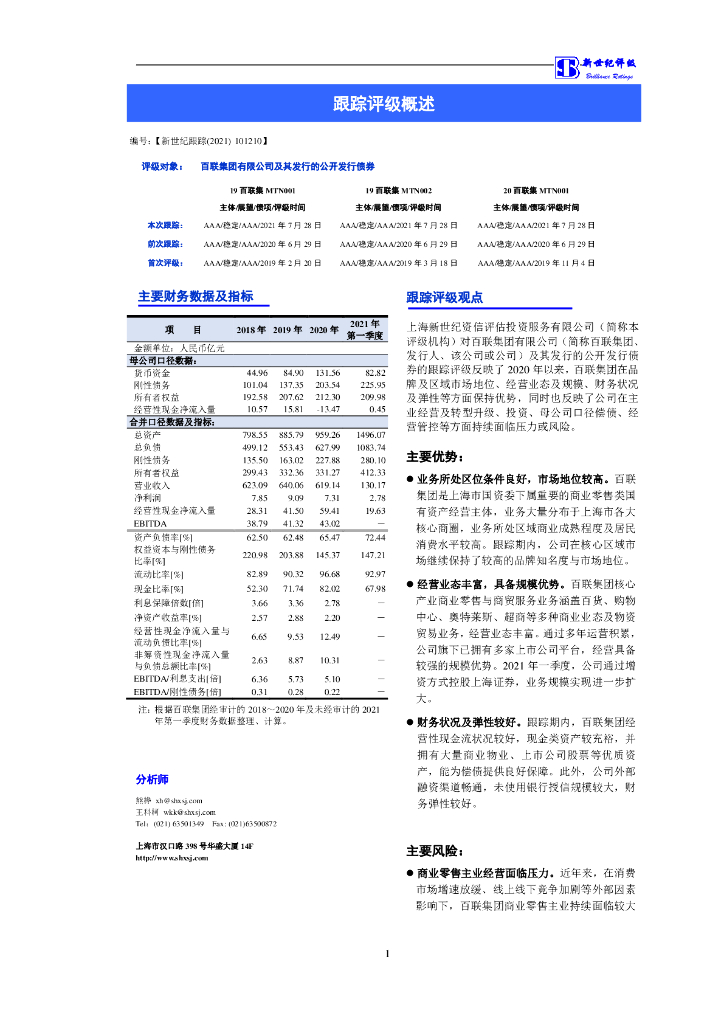 新世纪:百联集团有限公司及其发行的公开发行债券跟踪评级报告.pdf
