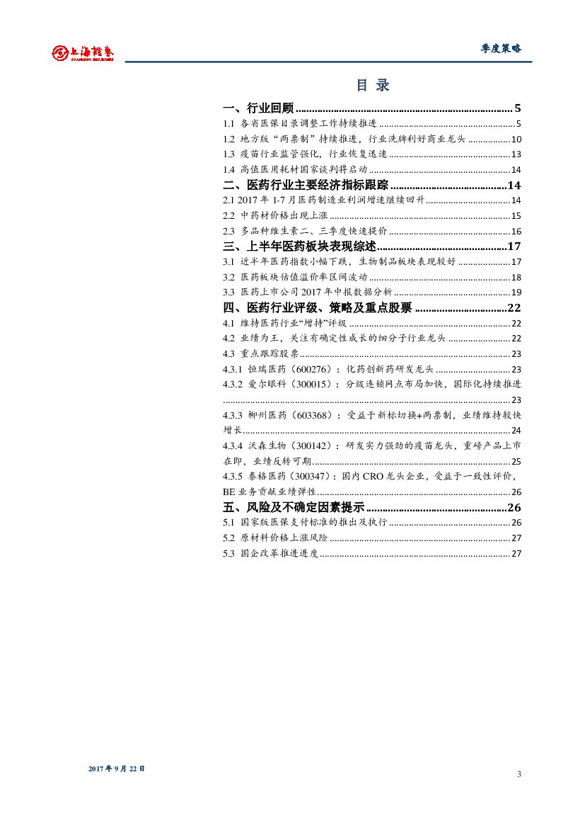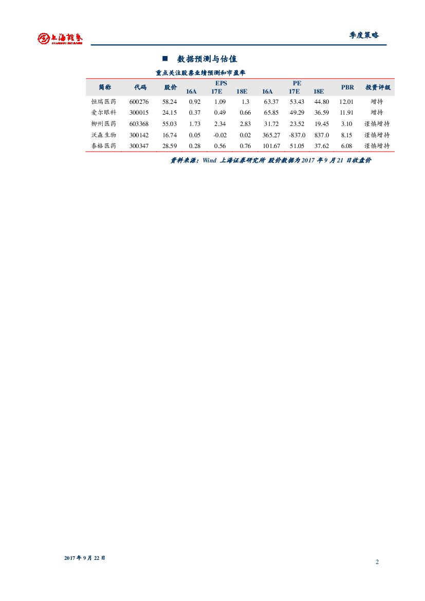 上海证券:2017年医药行业四季度投资策略:业绩为王,关注有确定性成长的细分子行业龙头.pdf