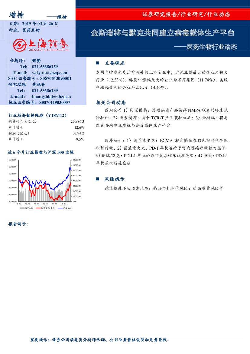 上海证券:医药生物行业动态:金斯瑞将与默克共同建立病毒载体生产平台.pdf