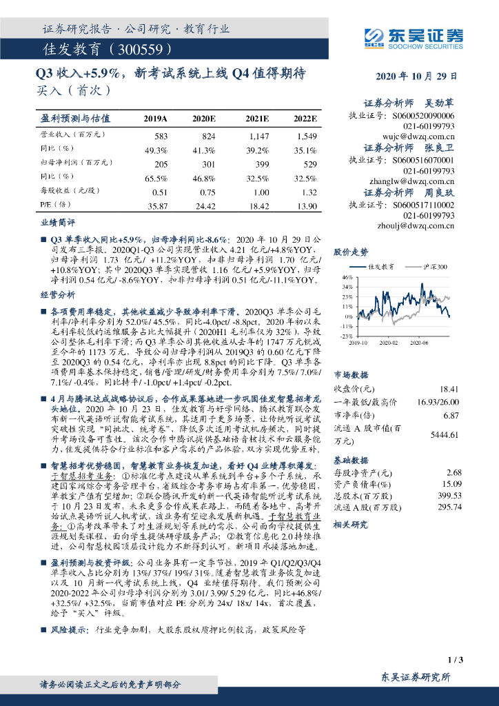 东吴证券:佳发教育(300559)-Q3收入+5.9%,新考试系统上线Q4值得期待.pdf
