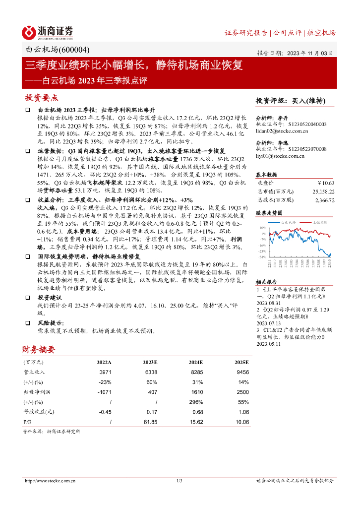 浙商证券:白云机场2023年三季报点评:三季度业绩环比小幅增长,静待机场商业恢复.pdf