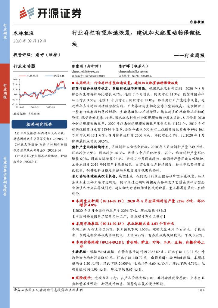 开源证券:农林牧渔行业周报:行业存栏有望加速恢复,建议加大配置动物保健板块.pdf