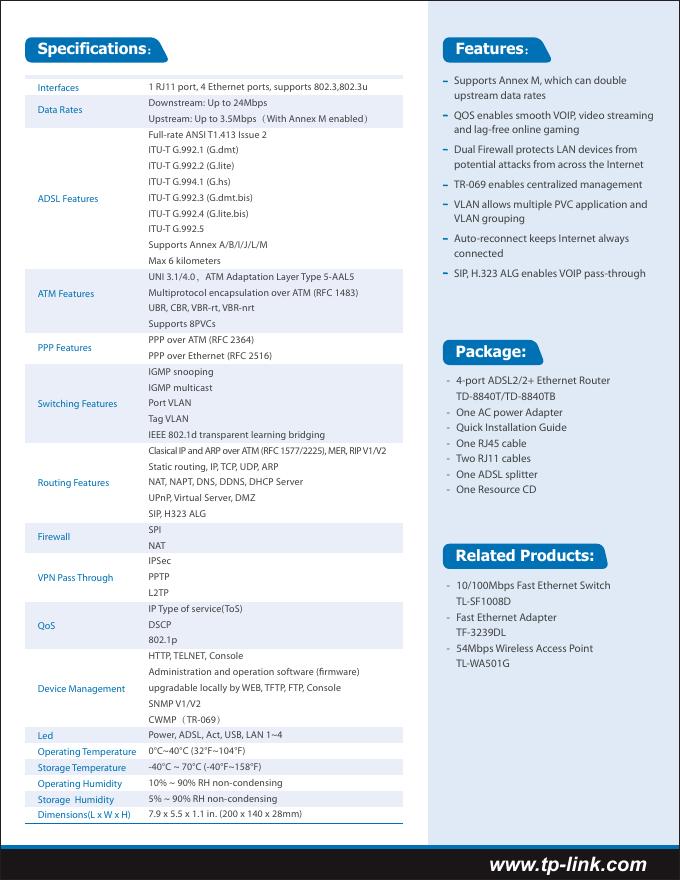 TP-LINK 4-port ADSL2/2+ Ethernet Router TD-8840T/TD-8840TB User Guide.pdf
