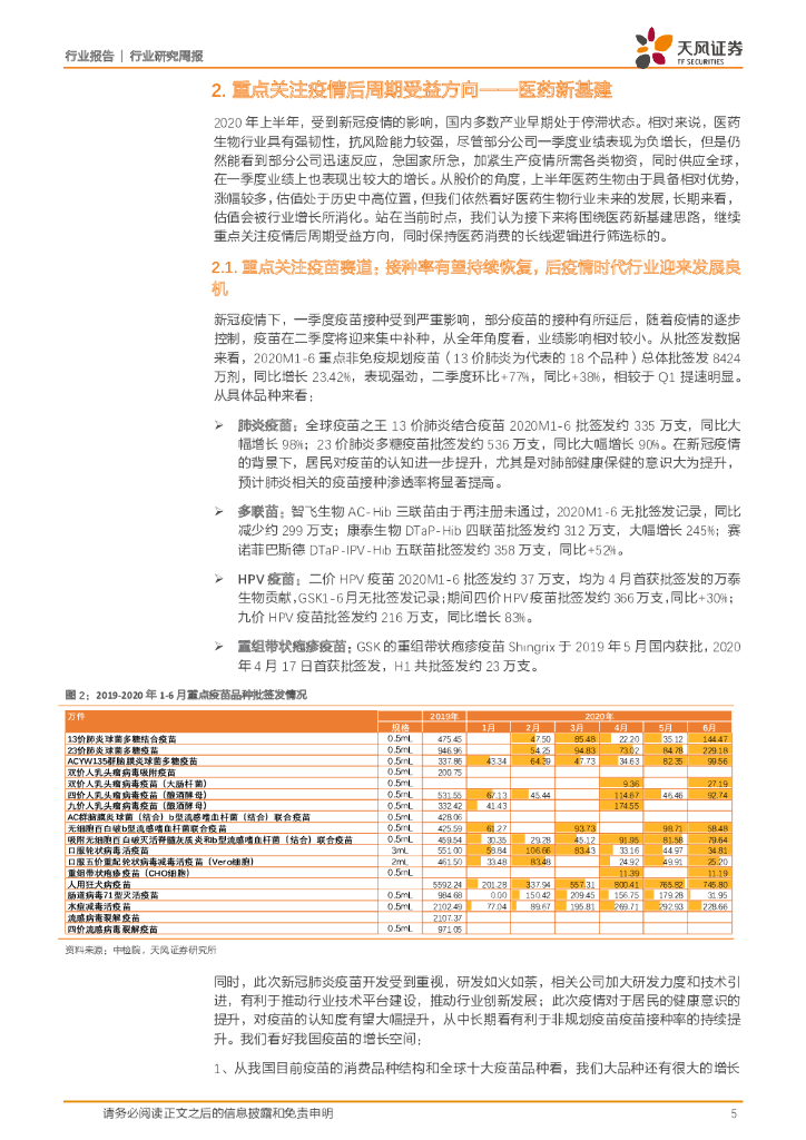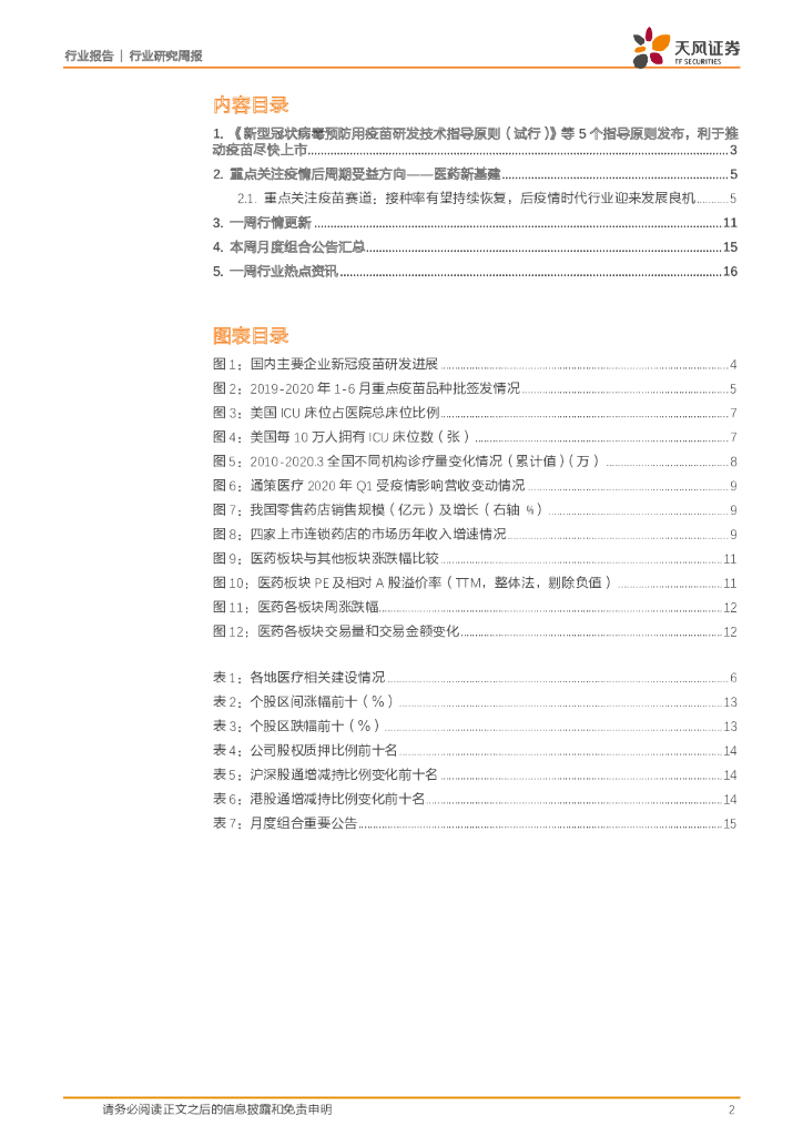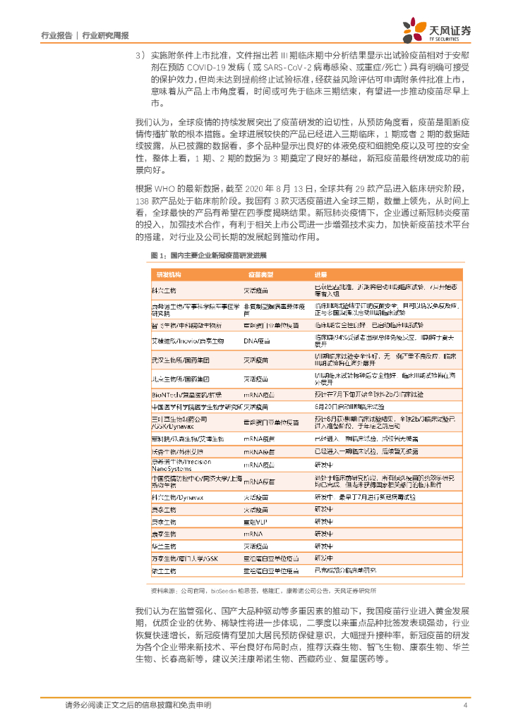 天风证券:医药生物行业研究周报:《新型冠状病毒预防用疫苗研发技术指导原则(试行)》等发布,利于新冠疫苗加速上市.pdf