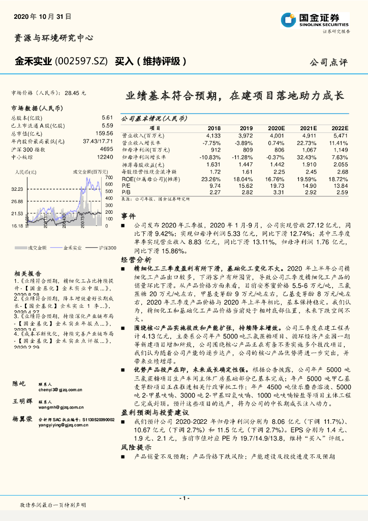 国金证券:金禾实业(002597)-业绩基本符合预期,在建项目落地助力成长.pdf