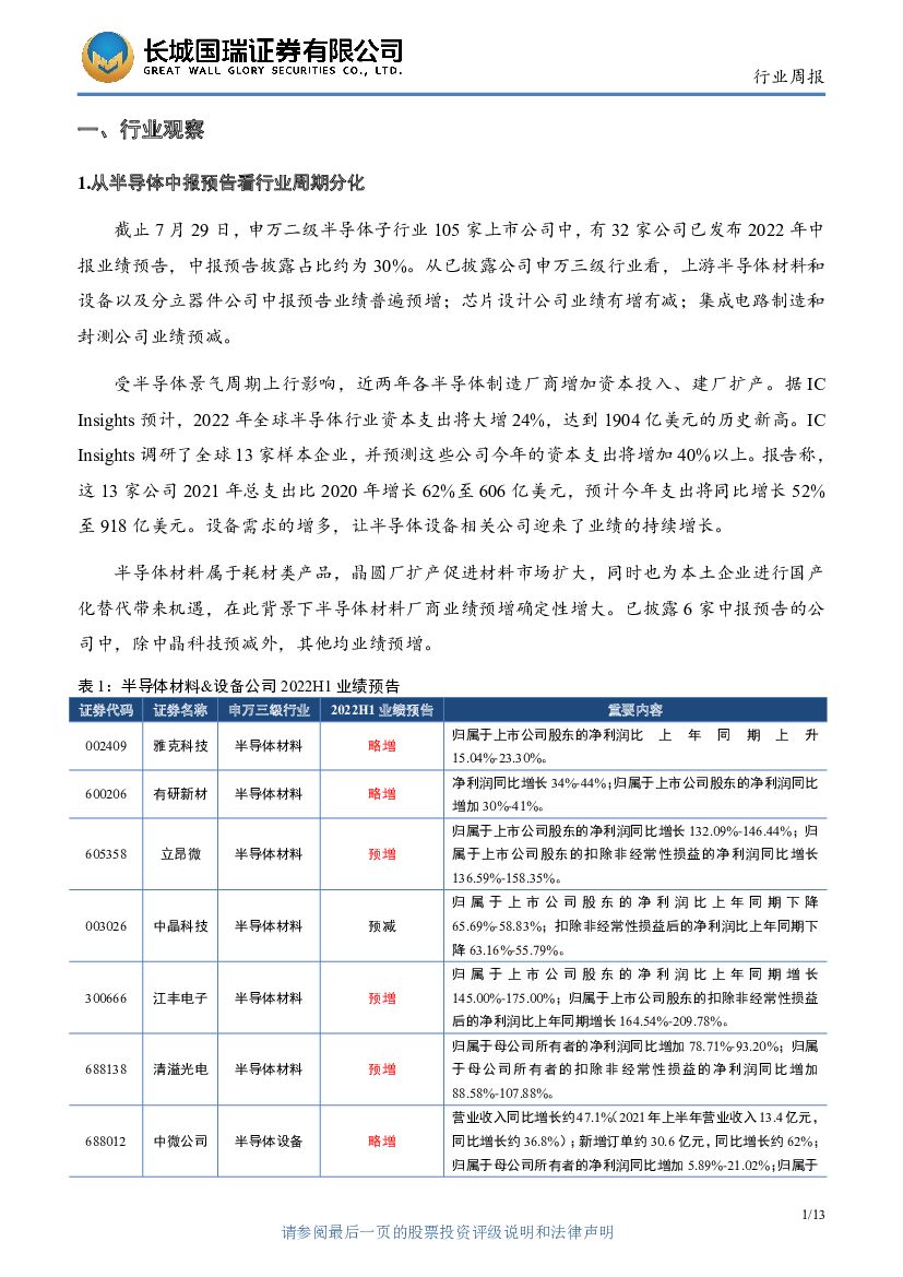 长城国瑞证券:电子行业双周报2022年第4期总第4期:从半导体中报预告看行业周期分化.pdf