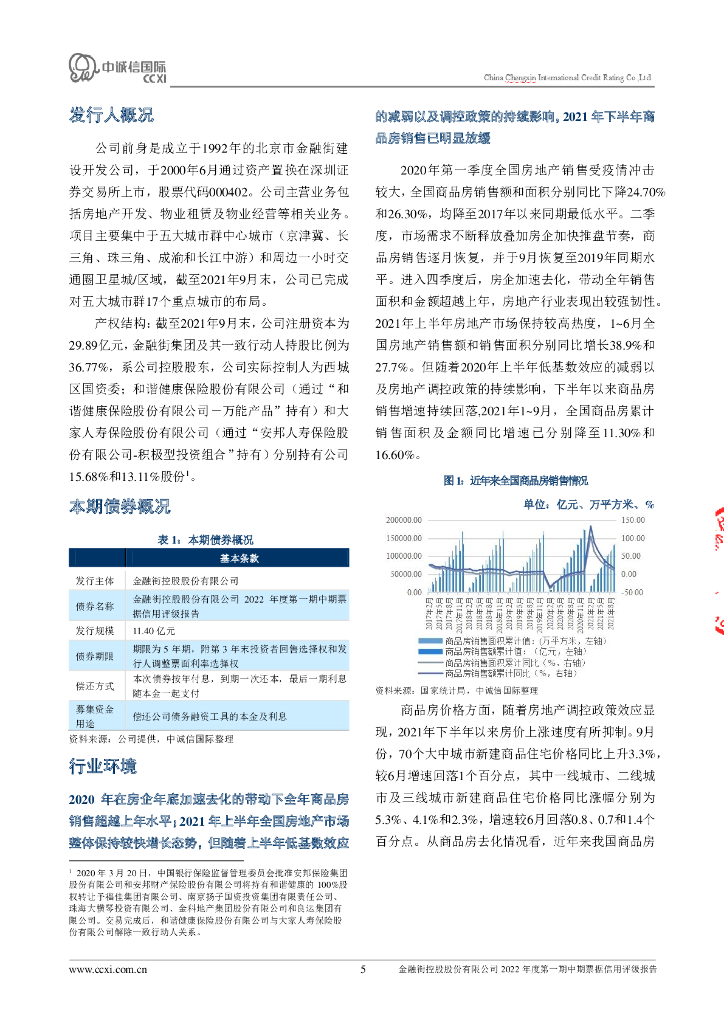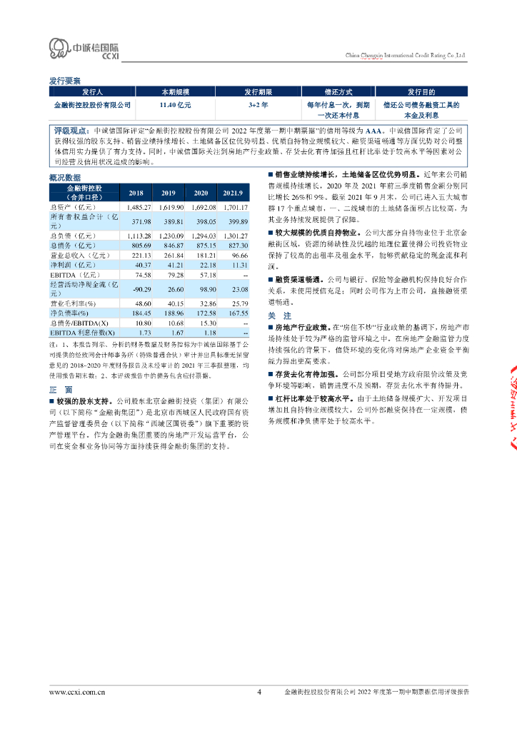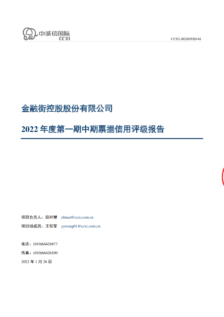 中诚信:金融街控股股份有限公司2022年度第一期中期票据信用评级报告及跟踪评级安排.pdf