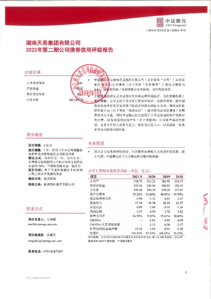 鹏元:湖南天易集团有限公司2022年第二期公司债券信用评级报告.pdf