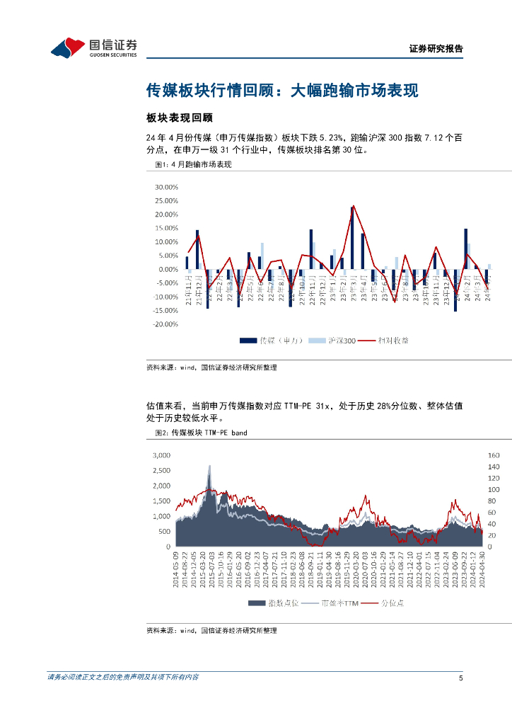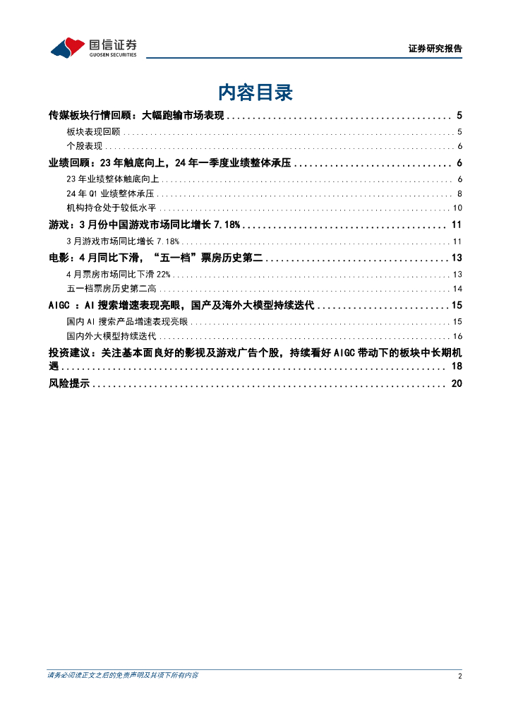 国信证券:传媒行业财报回顾暨5月投资策略:24年一季报整体承压,关注基本面表现及AIGC应用端中长期机会.pdf