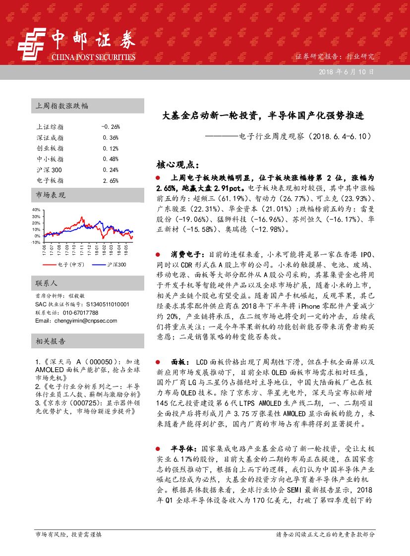 中邮证券:电子行业周度观察:大基金启动新一轮投资,半导体国产化强势推进.pdf