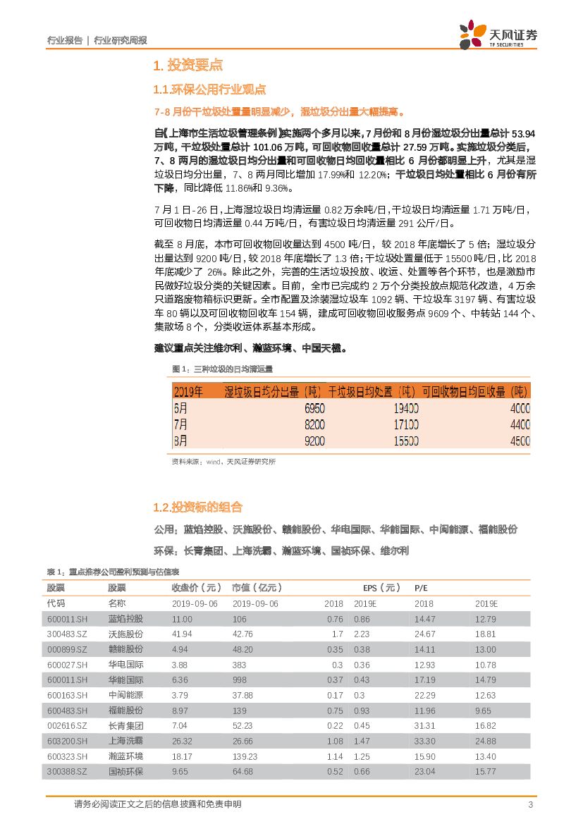 天风证券:公用事业行业研究周报:7-8月份干垃圾处置量明显减少,湿垃圾分出量大幅提高。.pdf