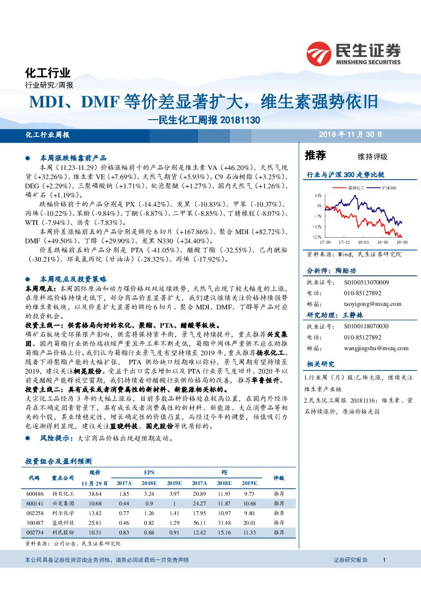 民生证券:民生化工周报:MDI、DMF等价差显著扩大,维生素强势依旧.pdf