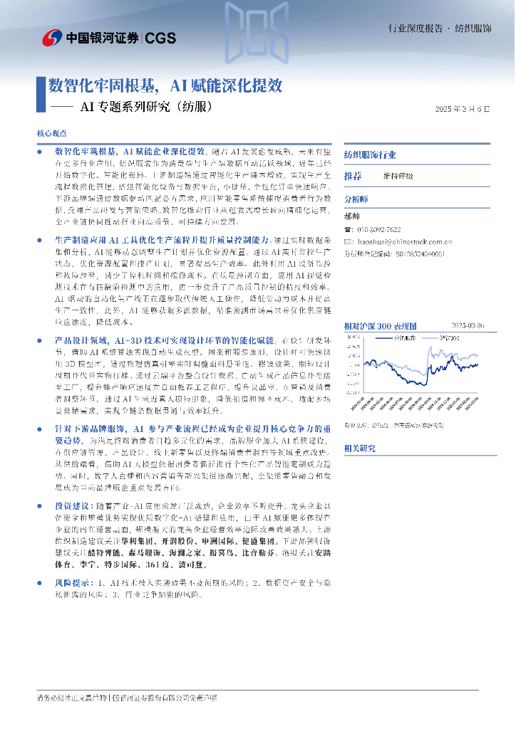 中国银河:AI专题系列研究(纺服):数智化牢固根基,AI赋能深化提效.pdf