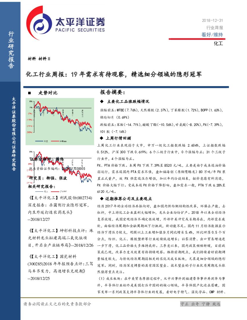 太平洋证券:化工行业周报:19年需求有待观察,精选细分领域的隐形冠军.pdf