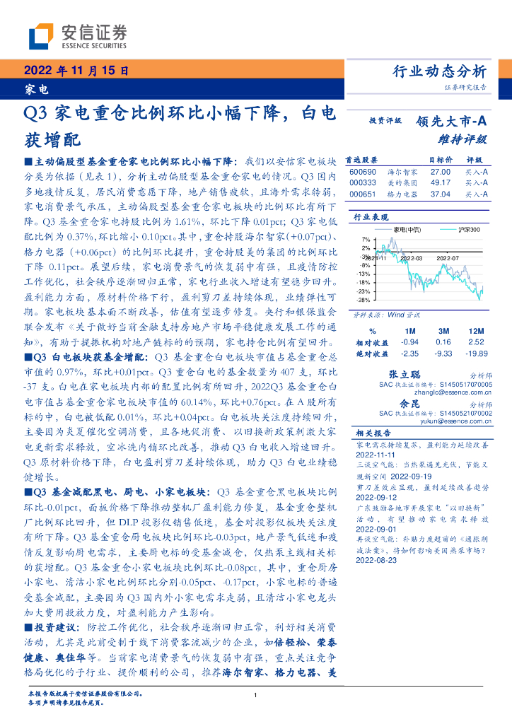 安信证券:家电行业动态分析:Q3家电重仓比例环比小幅下降,白电获增配.pdf