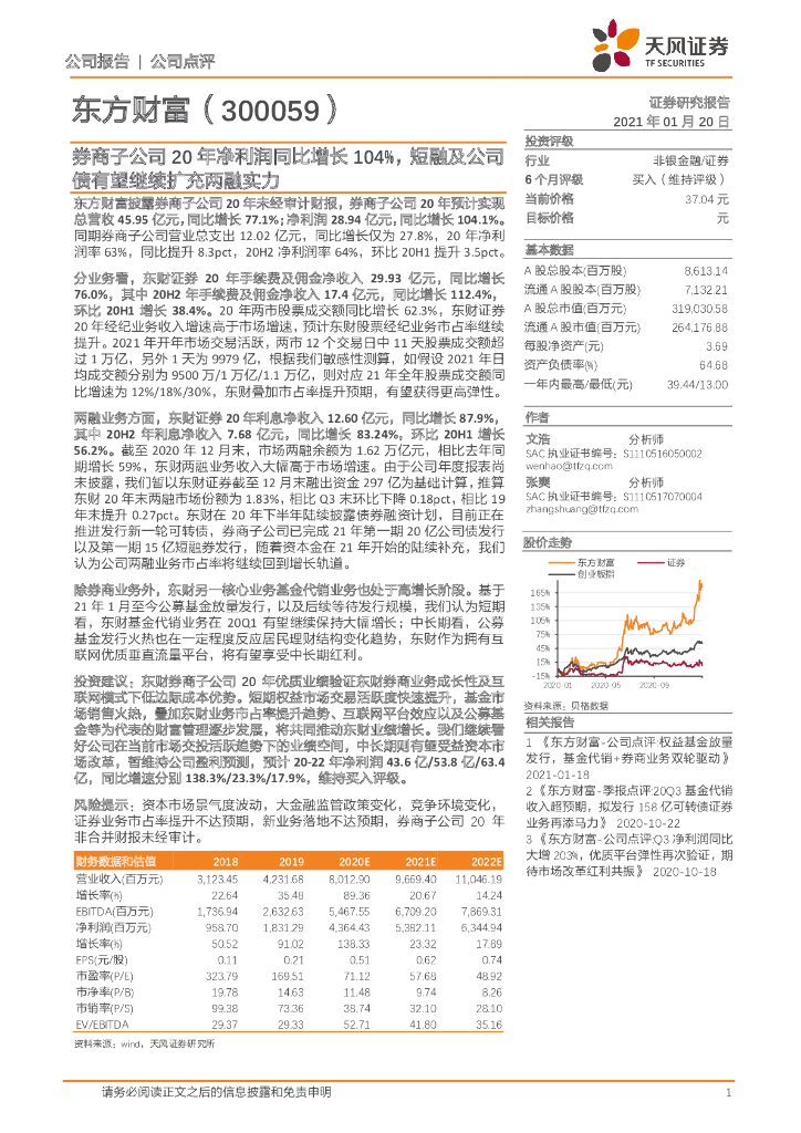 天风证券:东方财富(300059)-券商子公司20年净利润同比增长104%,短融及公司债有望继续扩充两融实力.pdf