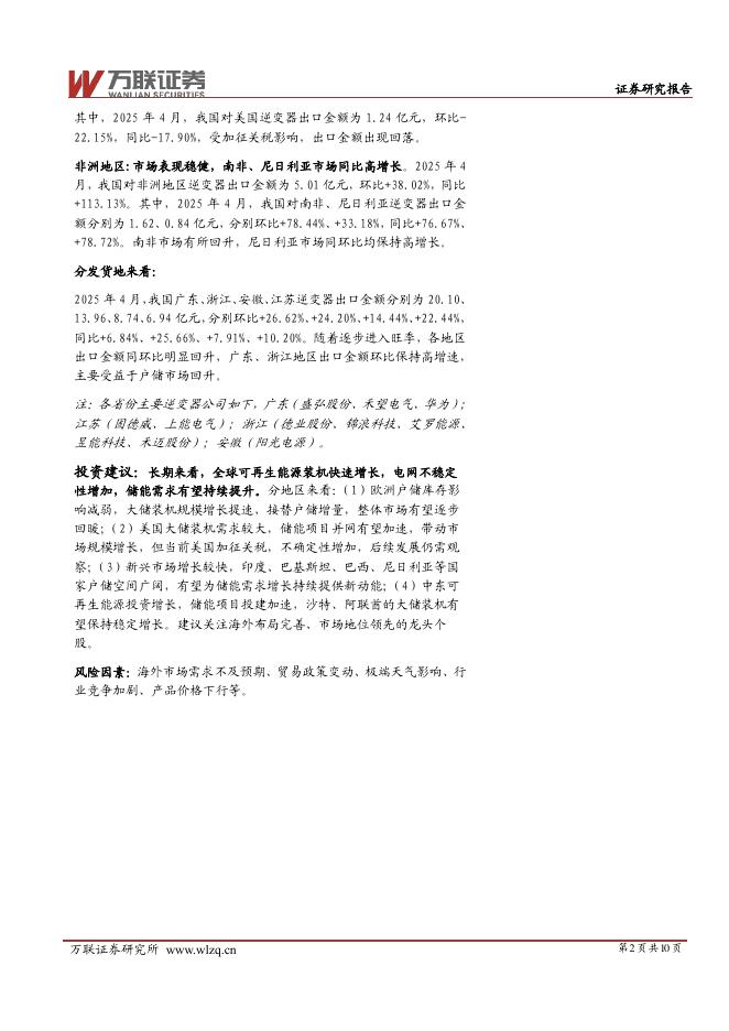 万联证券:电力设备行业跟踪报告:逆变器出口:4月出口高增长,亚非欧市场表现稳健.pdf