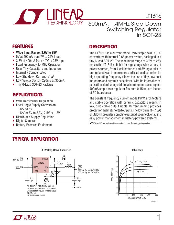 LINEAR TECHNOLOGY LT1616 数据手册.pdf