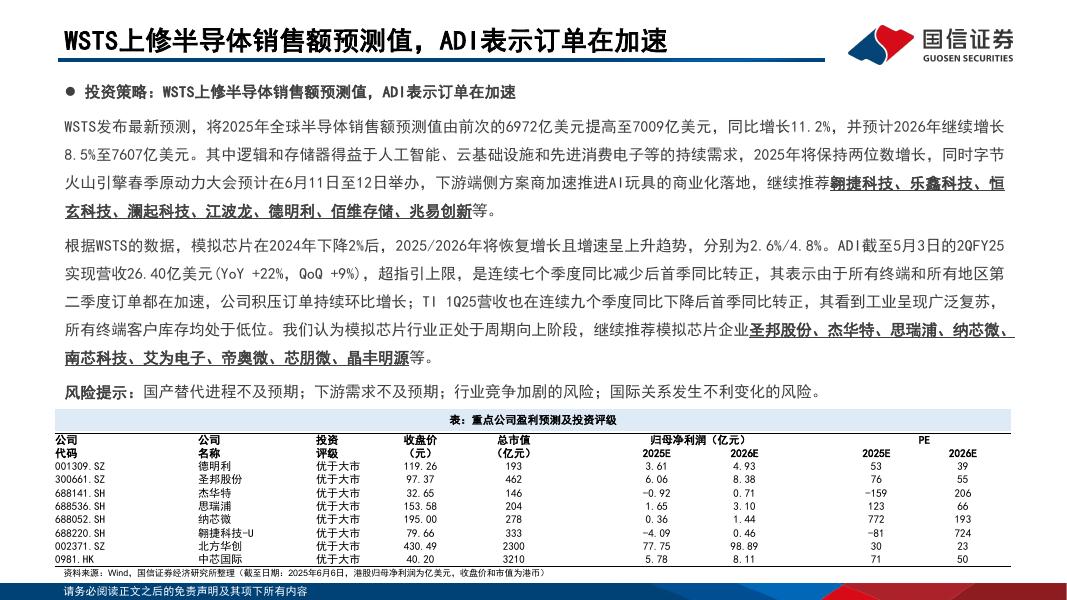 国信证券:半导体6月投资策略:WSTS上修半导体销售额预测值,ADI表示订单在加速.pdf