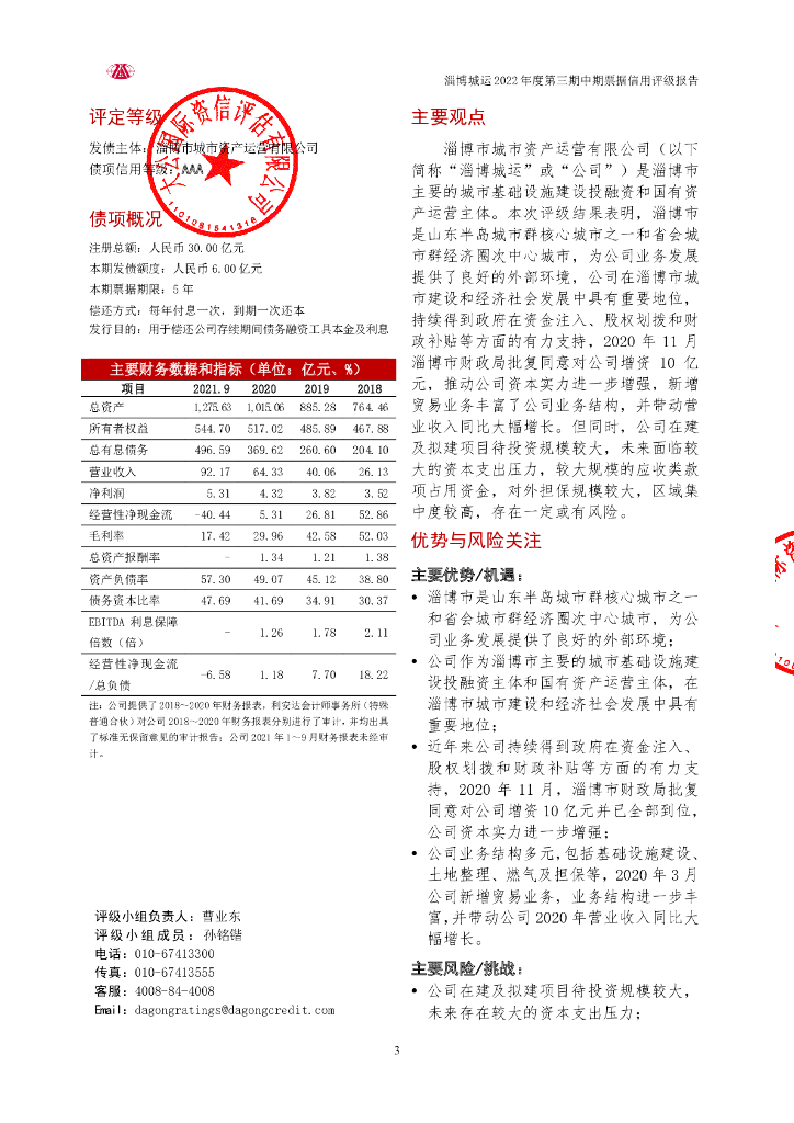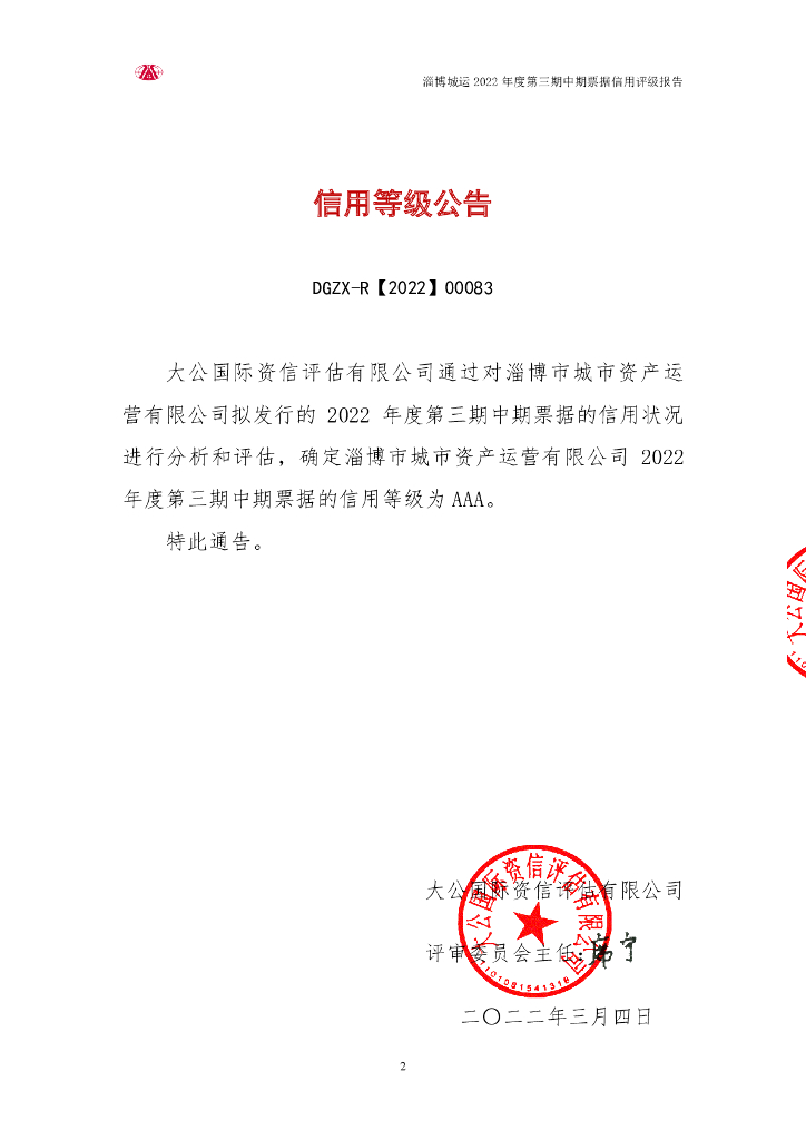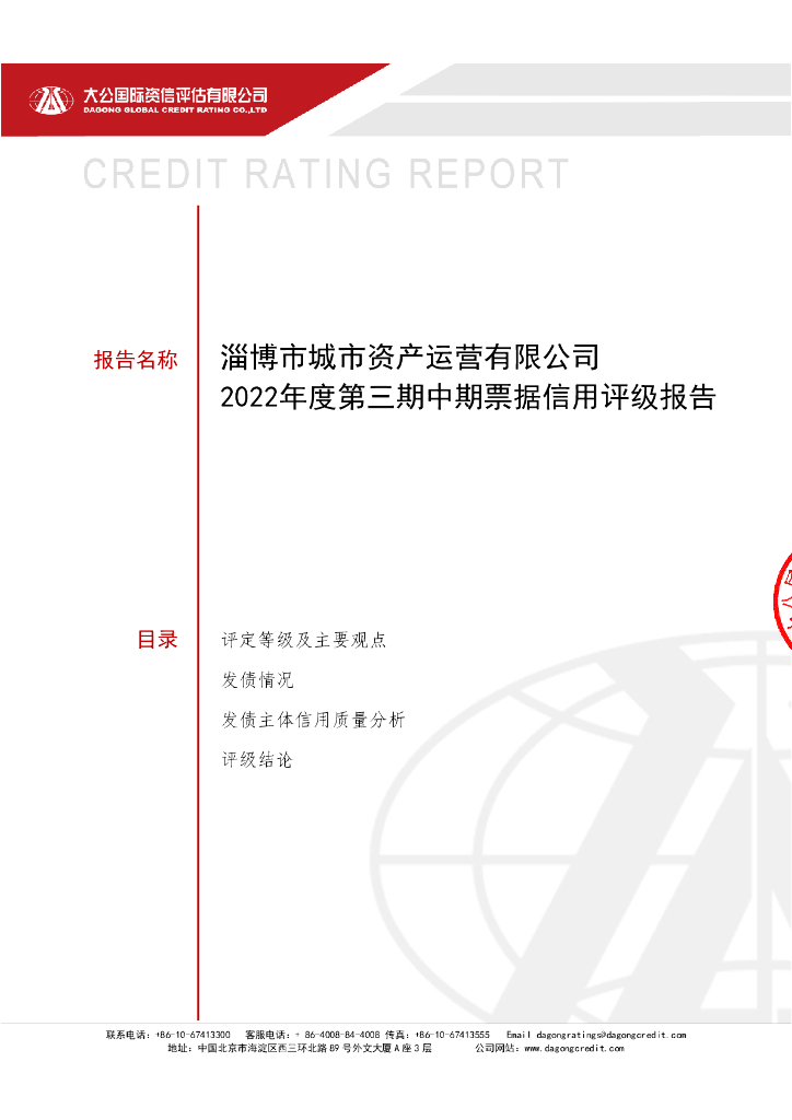 大公:淄博市城市资产运营有限公司2022年度第三期中期票据信用评级报告.pdf
