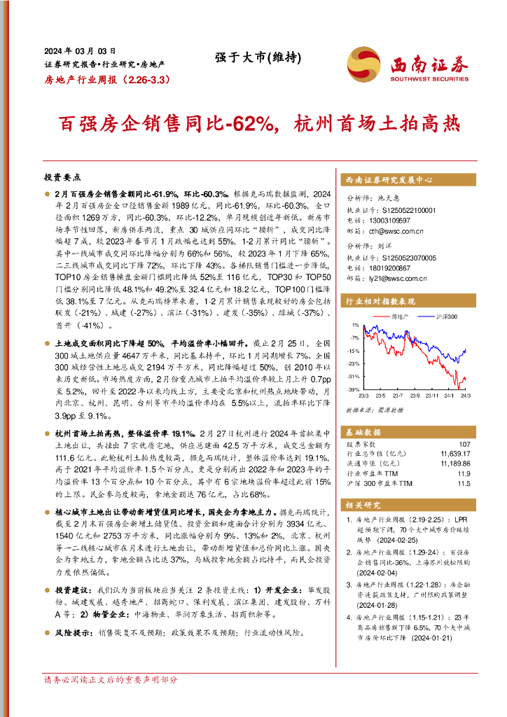 西南证券:房地产行业周报:百强房企销售同比-62%,杭州首场土拍高烧.pdf